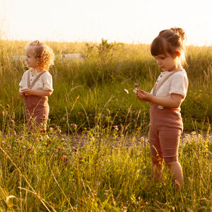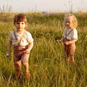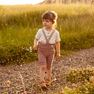Oživte letný šatník vášho drobca ľahkými a priedušnými organickými kraťasmi na traky.